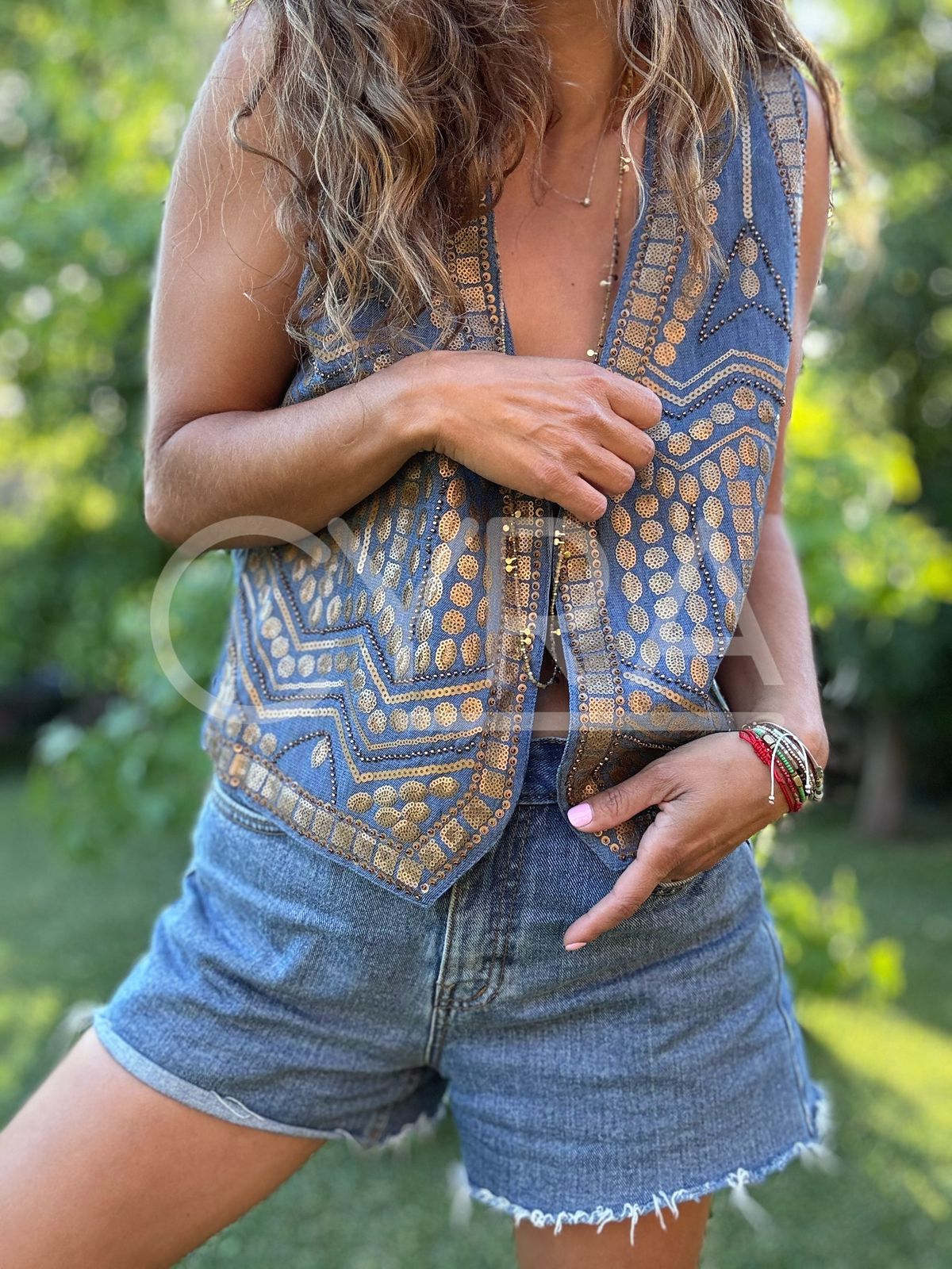 Guillete boho bordado tela tencel
