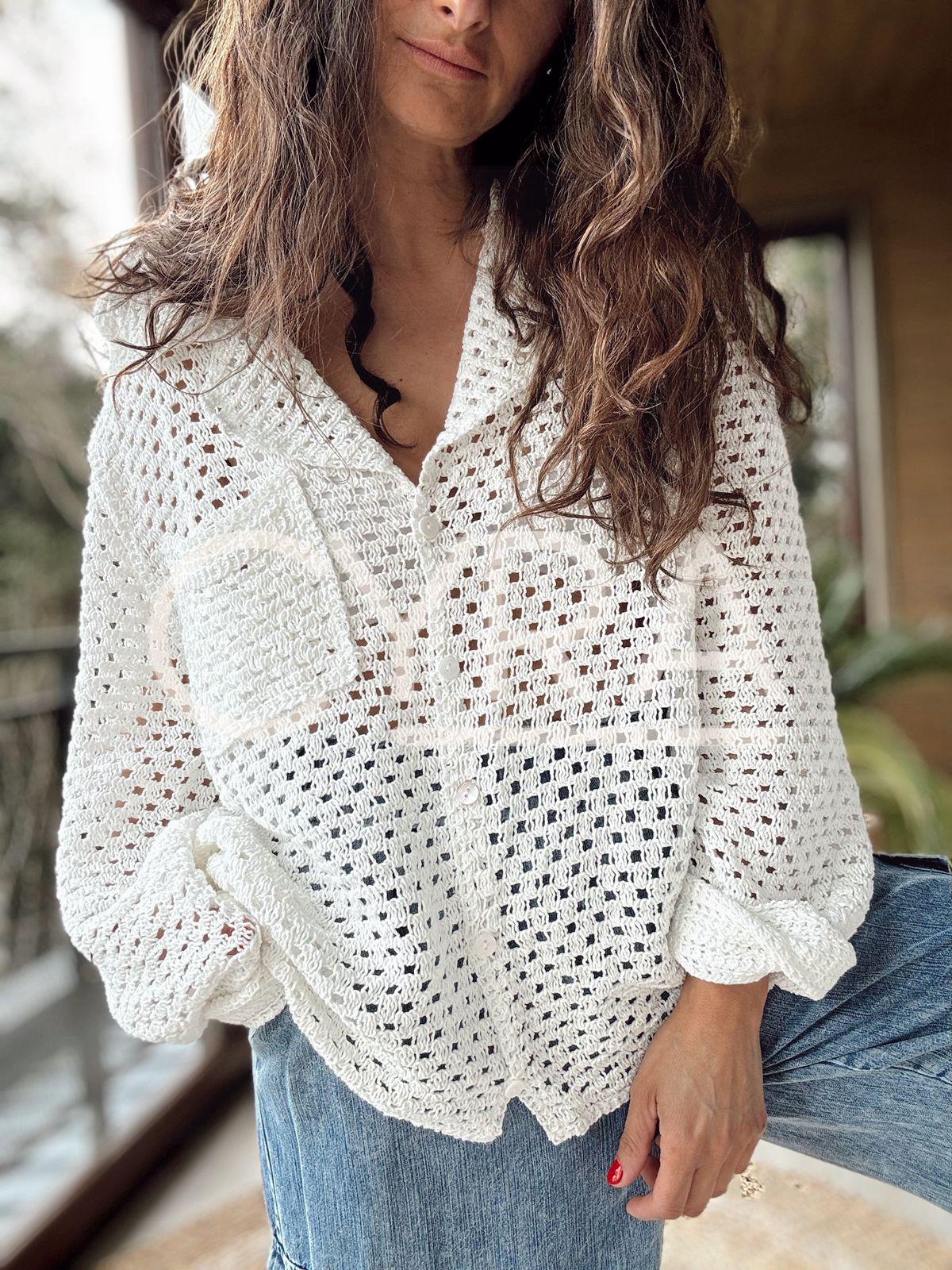 Chaleco Hilo botones blanco
