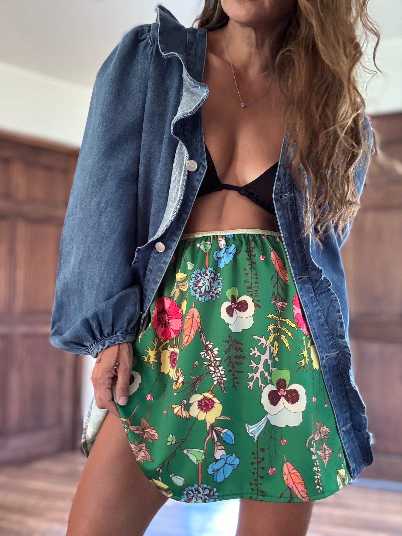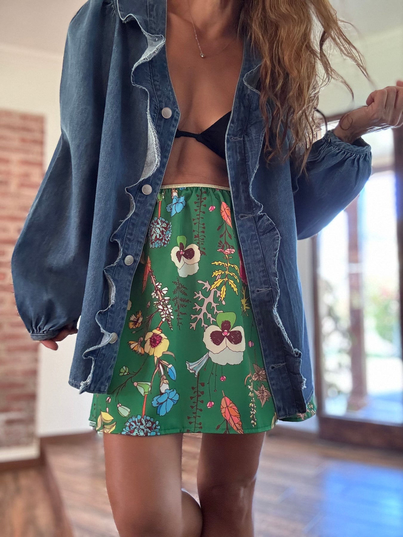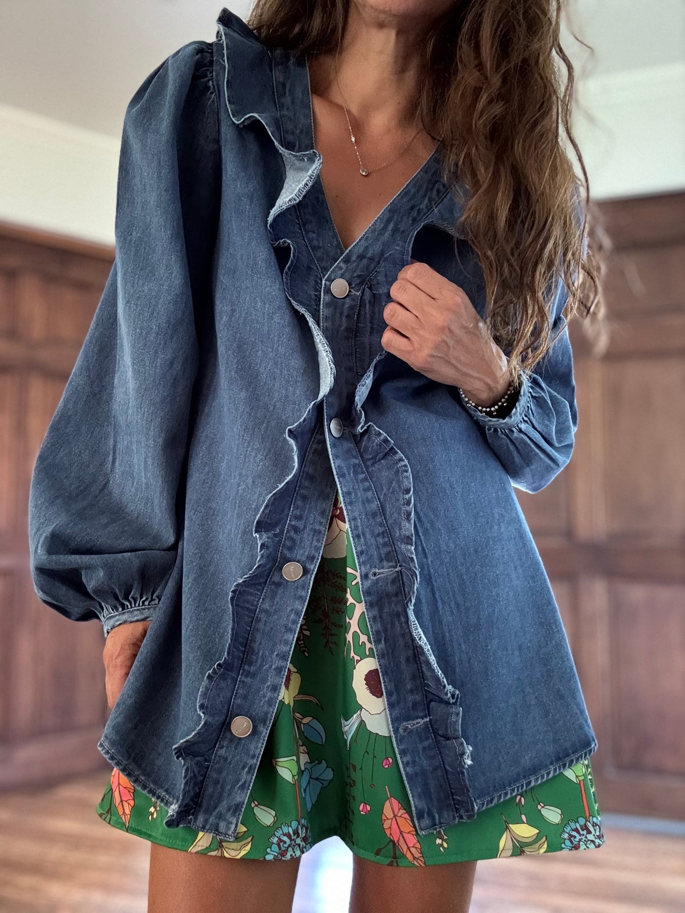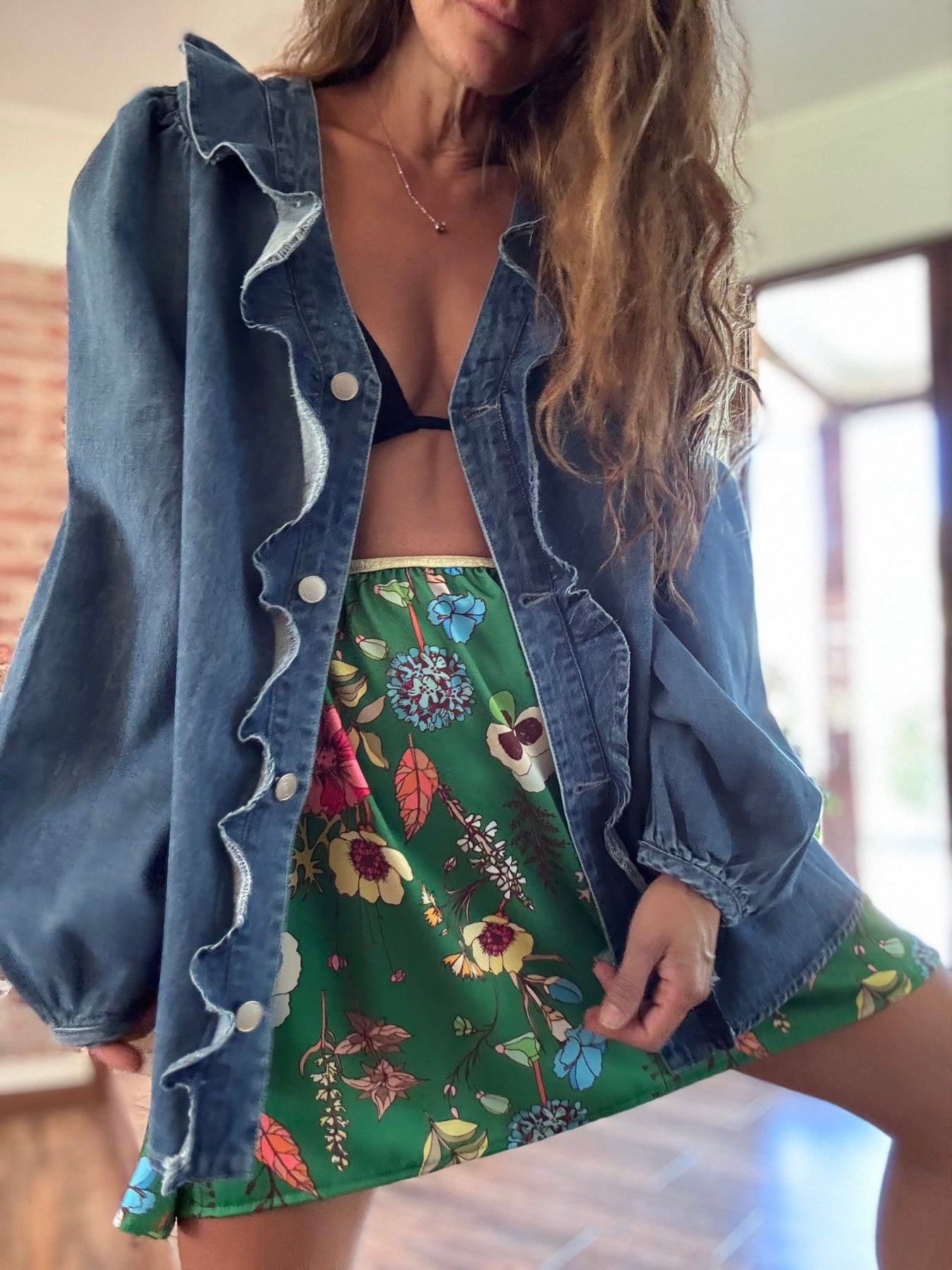 Sobre camisa jeans no elasticado, botones metálicos / Disponible en tallas S M y L