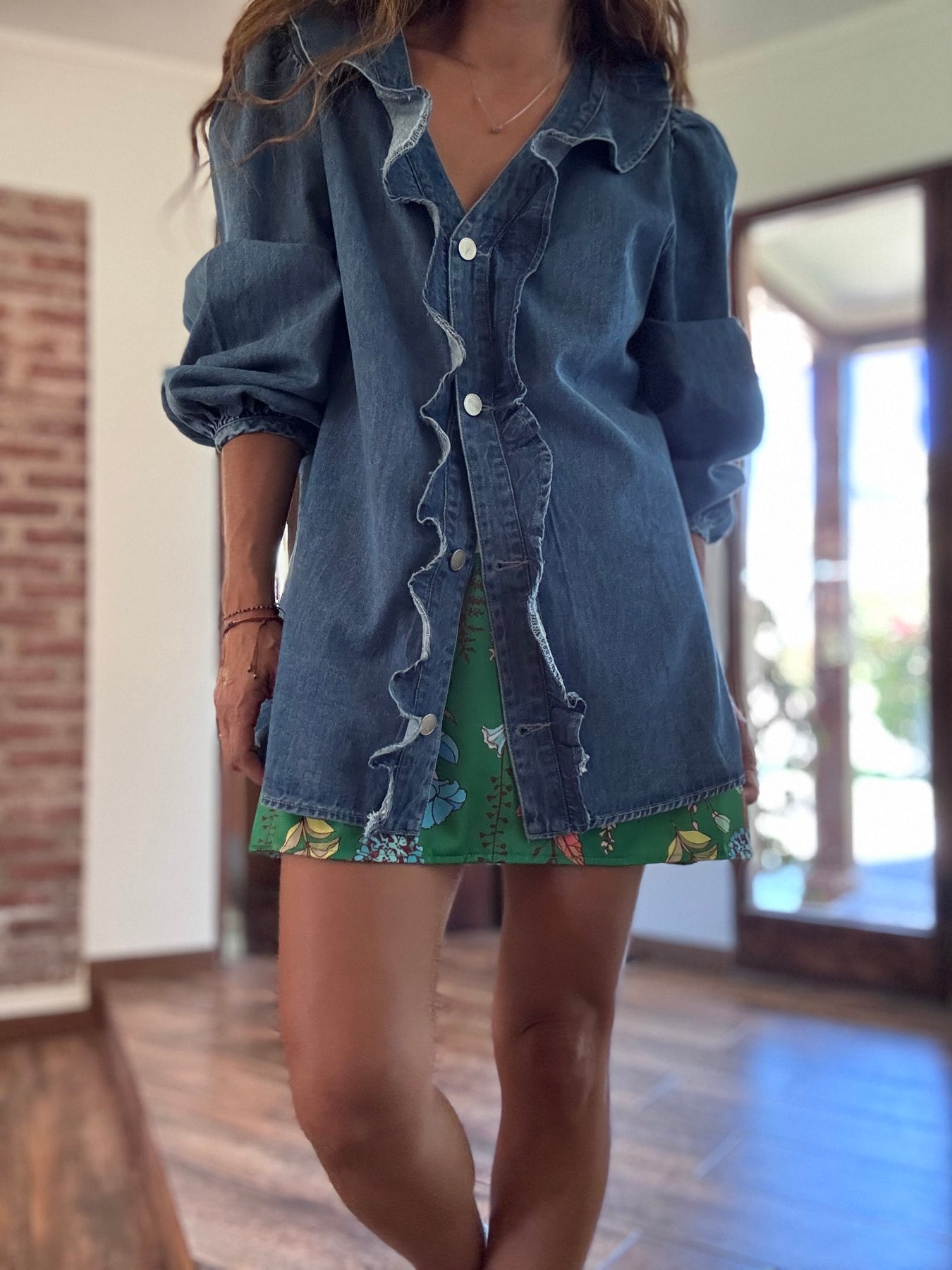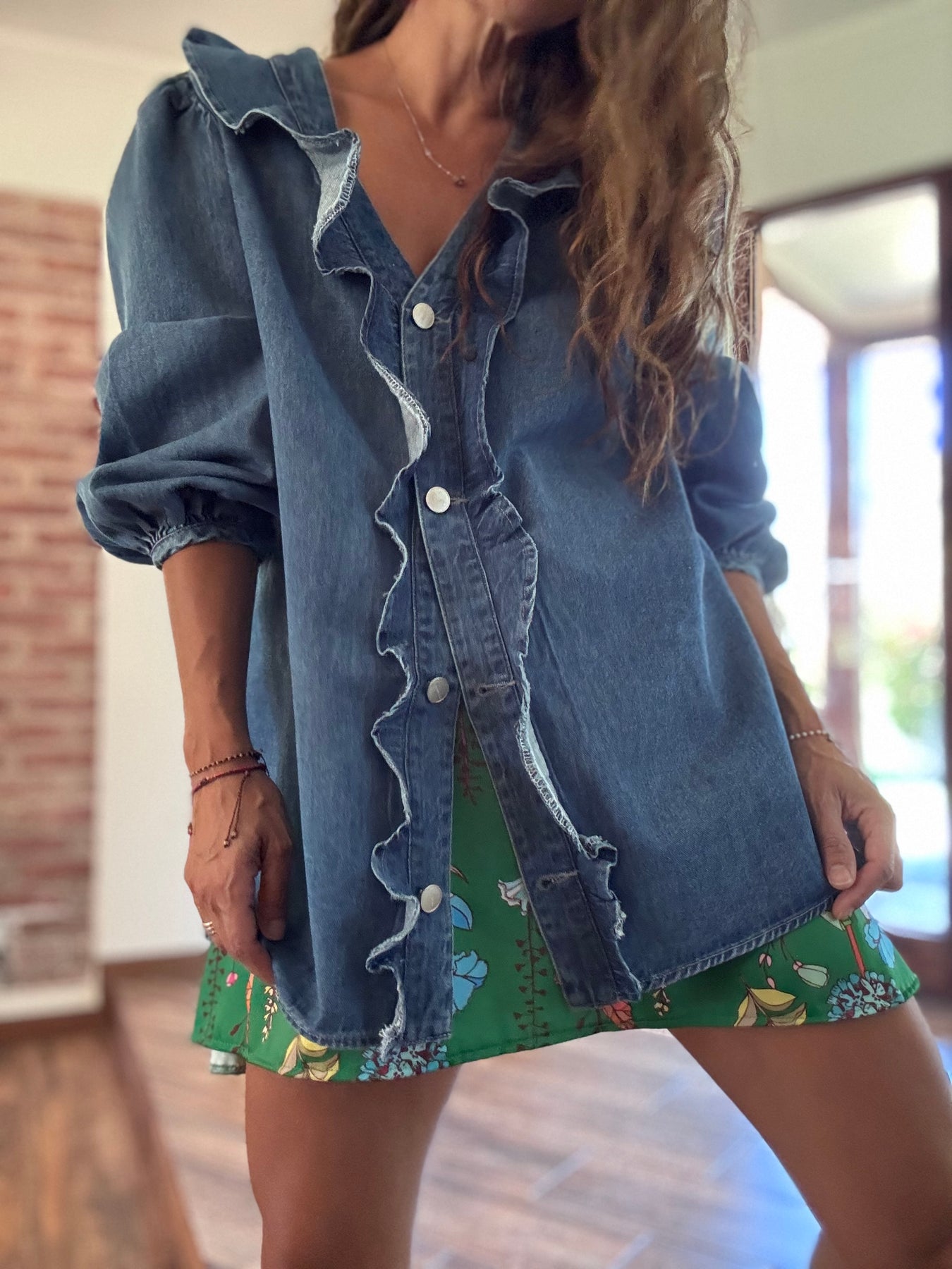 Sobre camisa vuelos jeans azul