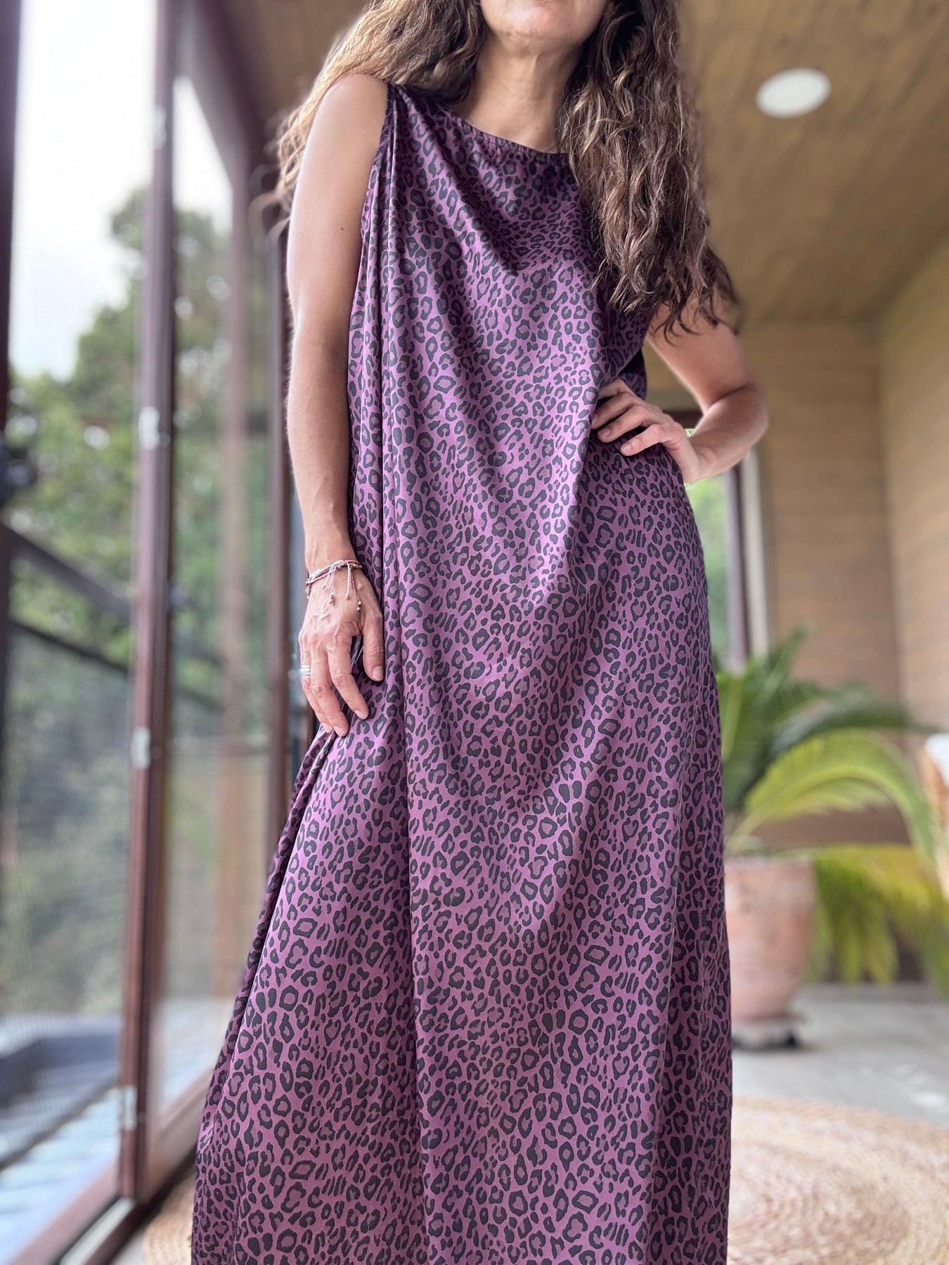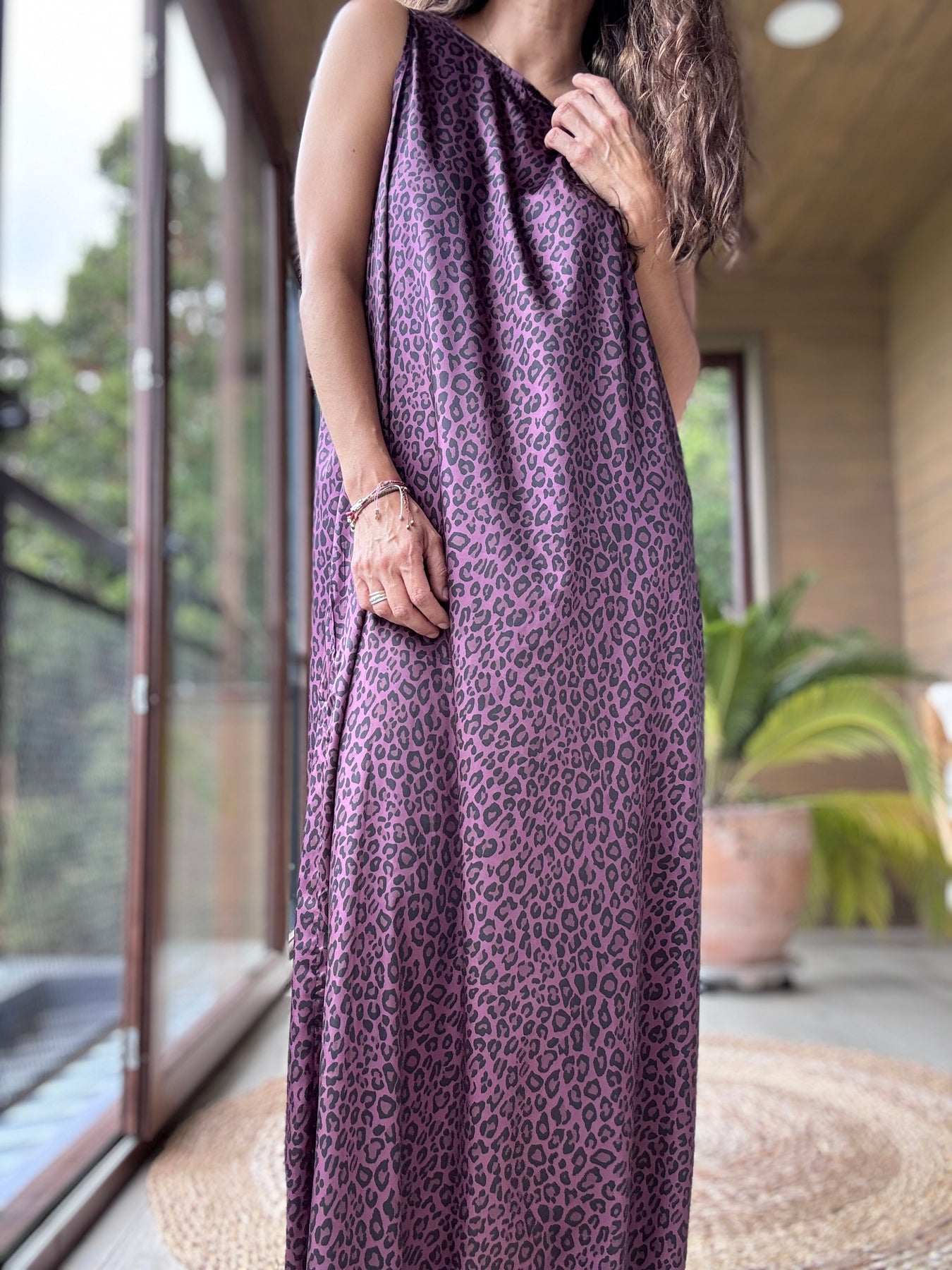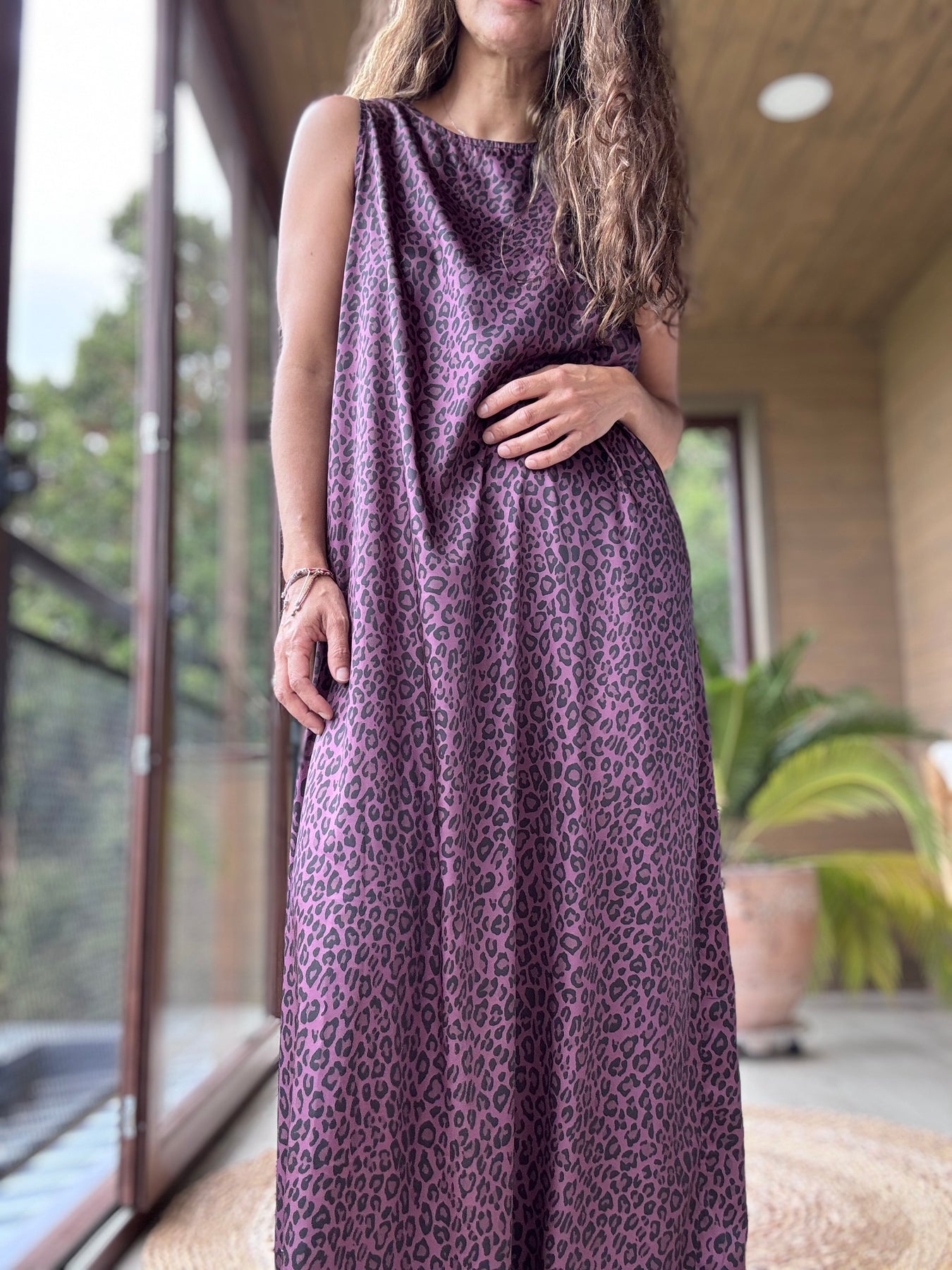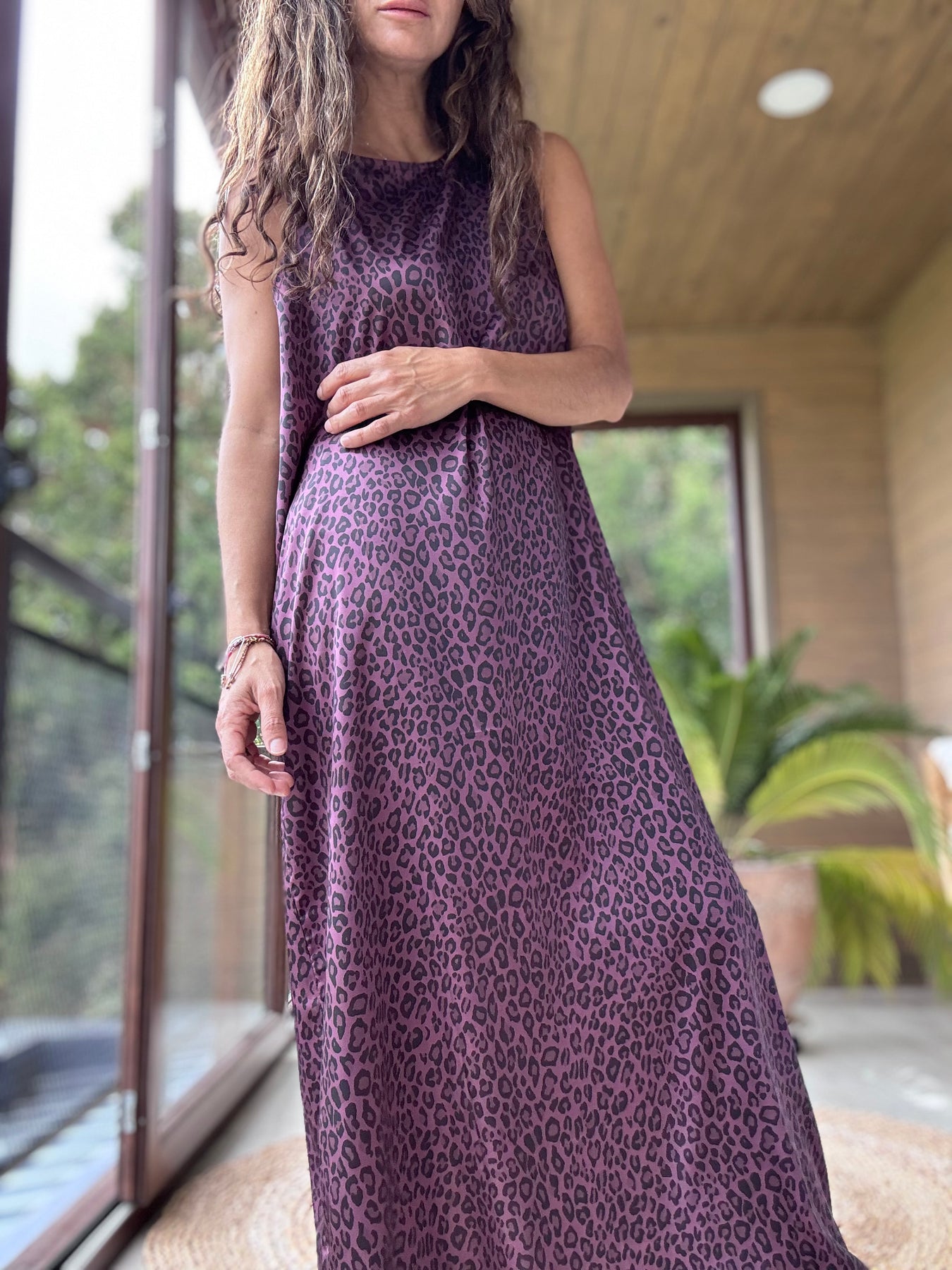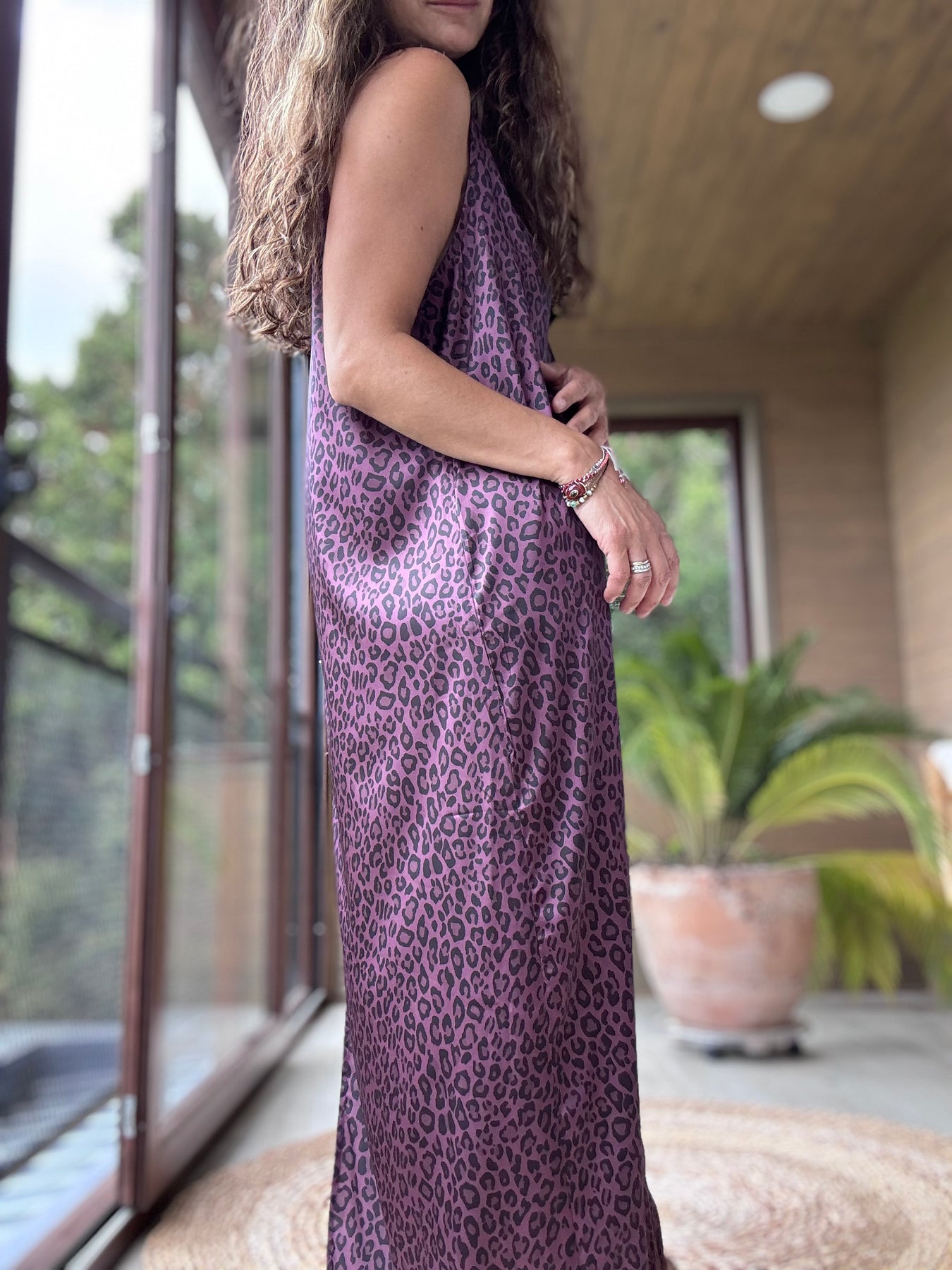 Vestido satén animal print vino