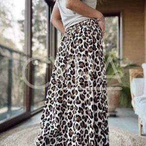 Pollera de tela elasticada, pretina ancha disponible en tallas SM y ML